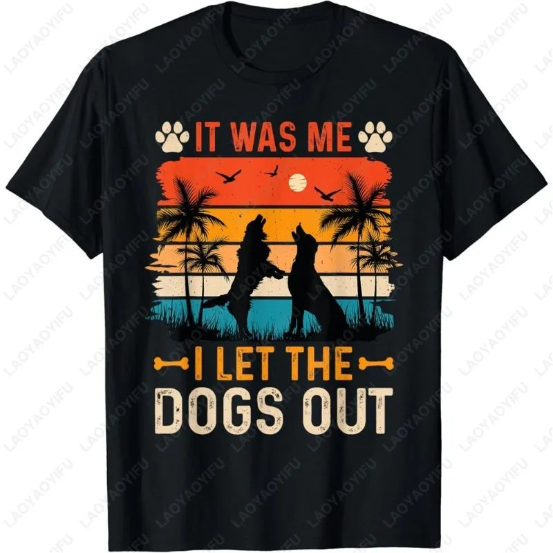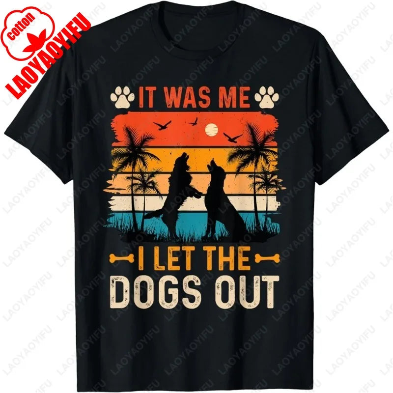 C'est moi qui ai laissé sortir les chiens" – T-shirt humoristique unisexe, vintage, manches courtes, coton, cadeau homme/femme